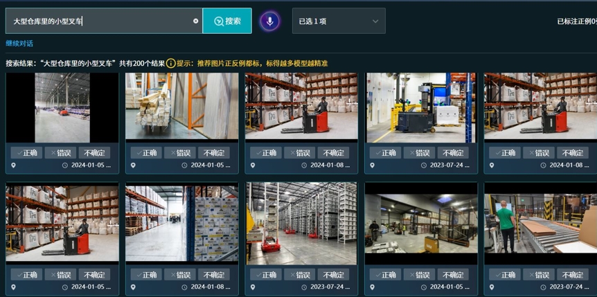 Agent(代理)在多模態(tài)大模型體系里扮演著至關(guān)重要的角色。AI Agent能夠基于歷史交互記錄和現(xiàn)有的算法能力,做出更為精準(zhǔn)的決策輔助。依圖天問(wèn)4.0可輔助逐步對(duì)齊認(rèn)知,解構(gòu)重組算法。例如:當(dāng)我們想訓(xùn)練一個(gè)“大型倉(cāng)庫(kù)里的小型叉車”,Agent會(huì)針對(duì)“大型倉(cāng)庫(kù)”和“小型叉車”的語(yǔ)義做對(duì)齊,從而使得用戶的想法可以快速轉(zhuǎn)化為直觀的算法,讓用戶的每一個(gè)想法都能即時(shí)轉(zhuǎn)化為直觀的操作指令,實(shí)現(xiàn)“想法即算法”的飛躍,呈現(xiàn)出工作助手、智能體的靈動(dòng)與高效特征。