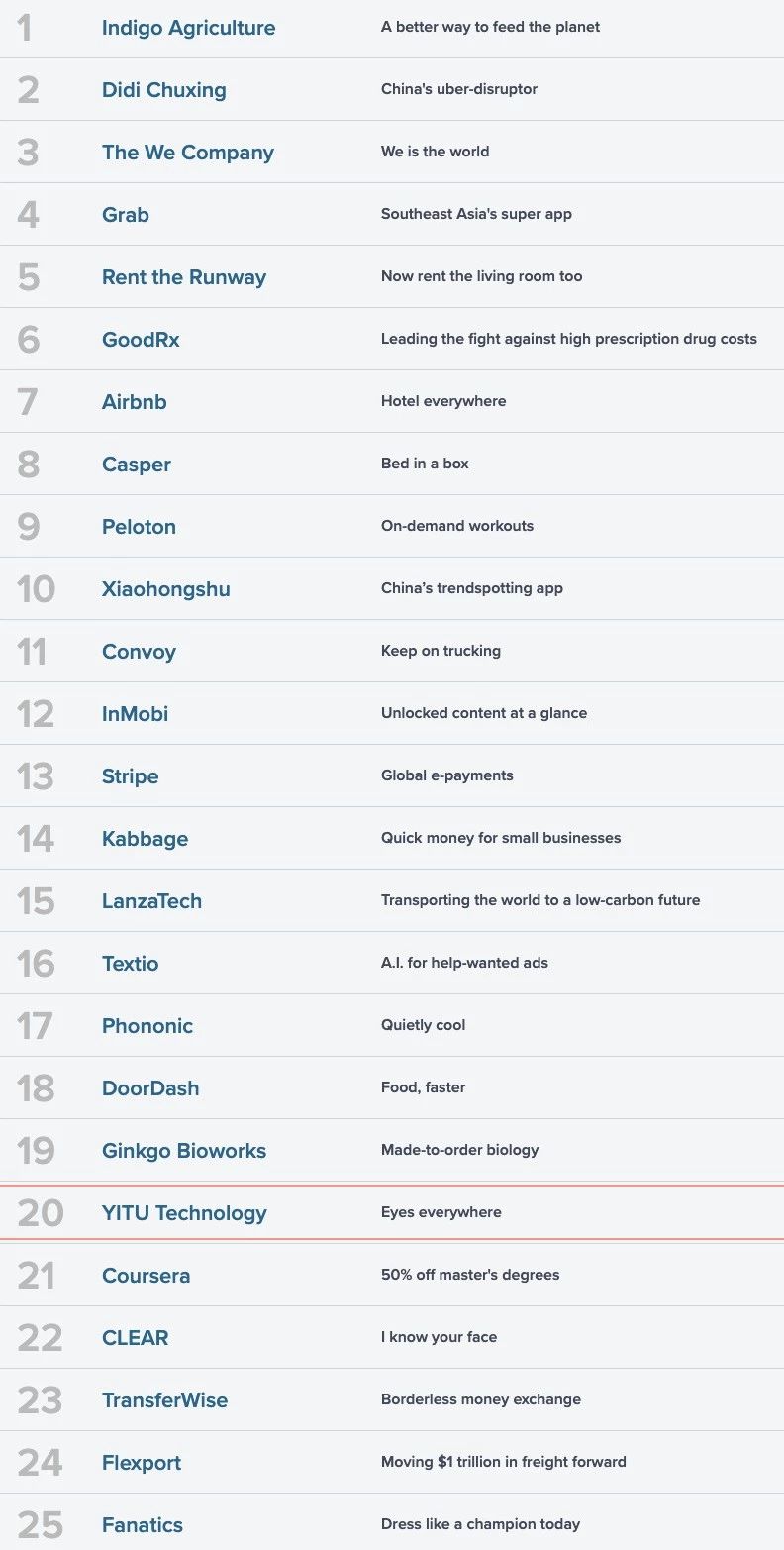 5月15日,全球最有影響力的財經媒體之一、美國全國廣播公司財經頻道(CNBC)公布了其2019年度“顛覆企業”50強榜單(2019 CNBC Disruptor 50),依圖作為唯一一家中國AI公司上榜,其它2家中國公司分別是滴滴出行、小紅書。